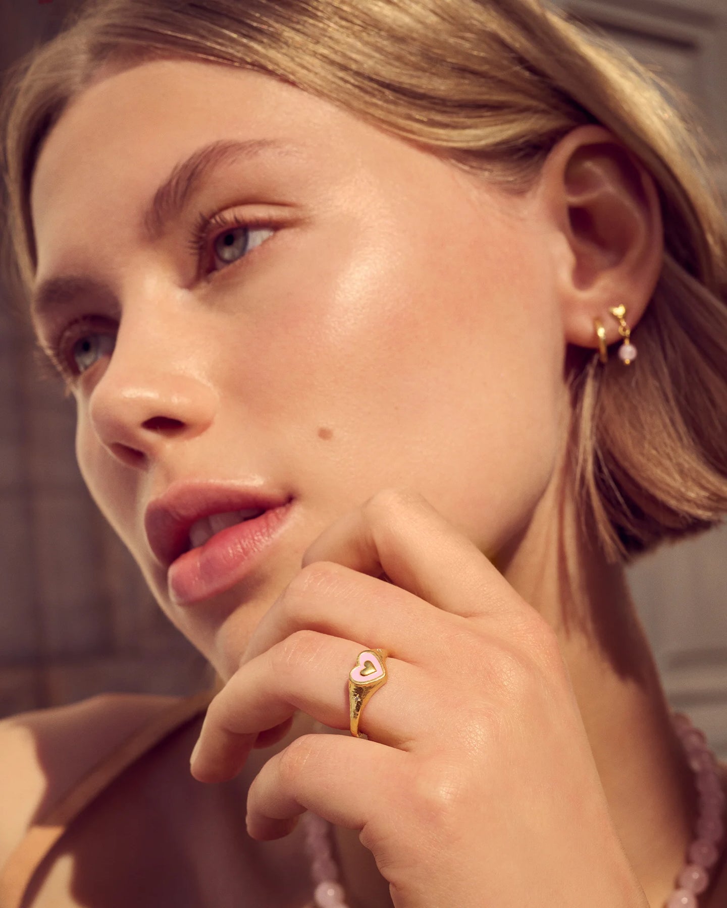 Welche Geschichten stehen im rosa Schein einer aufkeimenden Romanze geschrieben? Blushing Hearts ist eine liebevolle Hommage an die strahlende Zeit, in der Rosenquarz – der Stein, der bedingungslose Liebe verkörpert – mit zarten Herzen vereint wird und zusammen Schmuckstücke entstehen lässt, die Wärme und Zuneigung ausstrahlen.