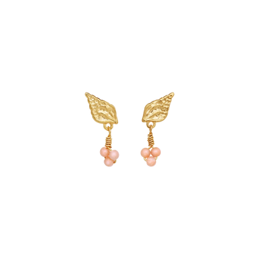Mit dem Abdruck einer Muschel und einer eleganten Anordnung atemberaubender rosa Opale entführen Sie die Olina Ohrringe wie eine frische Meeresbrise in den Sommer.